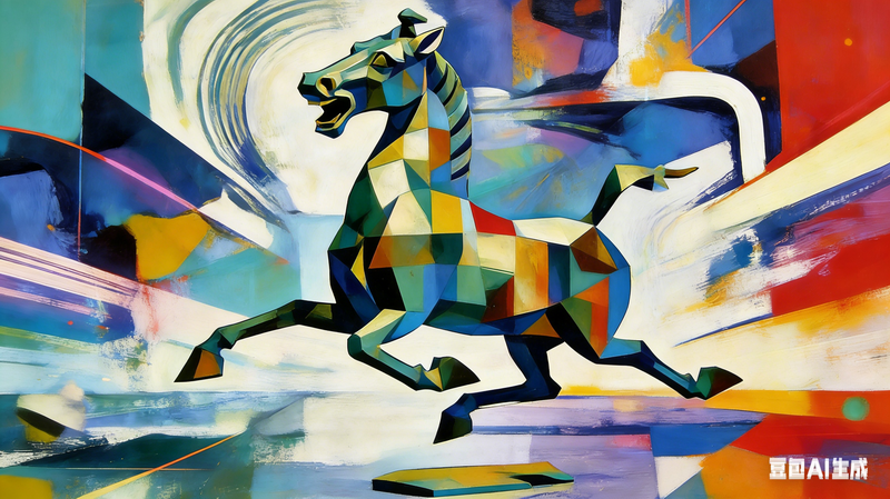 在生成创意插画的作品时,同学们用“线条+平面”的方式指挥 AI,让马的形象变得更具设计感和艺术性。